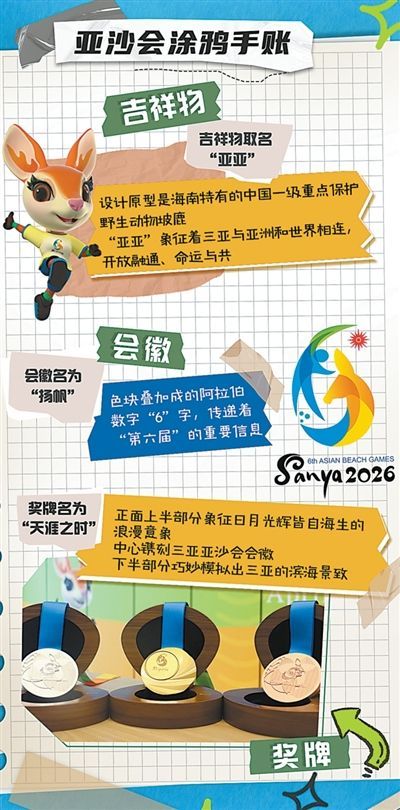 4月22日晚,三亚亚沙会开幕式将在天涯海角游览区的亚沙公园举行。盛会将近,三亚城区及三亚湾沿线已布设丰富的亚沙主题景观。在海月广场,亚沙会主题沙雕成为热门打卡点,吉祥物“亚亚”形象遍布街头。选手们跃跃欲试,观众的观赛热情同样高涨。赛事期间,三亚将推出6.5万张惠民门票,让市民轻松走进赛场,近距离感受国际赛事魅力。