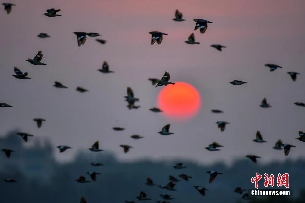 与落日、晚霞同框