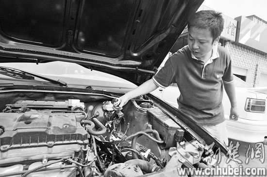 记者在青山区一修理厂见到曾先生时,他正在向修理厂工作人员询问维修价格。曾先生称,他买车不到3个月,车子总里程数也不到3000公里。8月2日晚,他将车子停在小区内,次日早上上班时,他竟发现车子的引擎盖翘起,里面的行车电脑、ABS制动系统等配件不翼而飞。记者看到,被盗车子引擎盖没有丝毫受损,其内部的锁芯已经坏掉,汽车发动机旁的电子线路也被人为剪断。