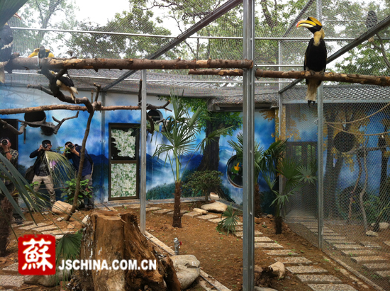 中国江苏网4月24日讯(通讯员 马海燕 记者 赵筱青 刘北洋)近日,南京红山动物园迎来了一批新客人——来自广西南宁的20只犀鸟,9只双角犀鸟,11只花冠皱盔犀鸟,年龄在一至二岁之间。