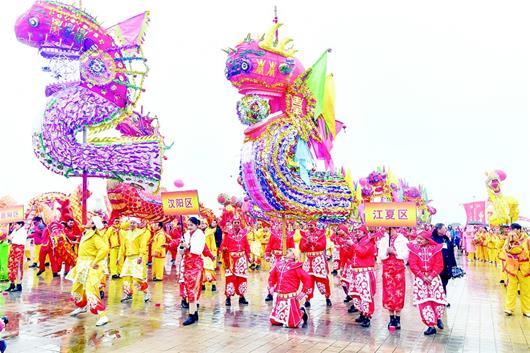 龙是中华民族的图腾,元宵舞龙灯也是中国民间传统民俗。在元宵节即将到来之际,昨天,武汉市第25届迎春舞龙大赛暨第16届锣鼓比赛,在汉口江滩三阳广场举行,低温下雨都挡不住人们“龙腾狮跃”的心情,现场锣鼓喧天人山人海。
