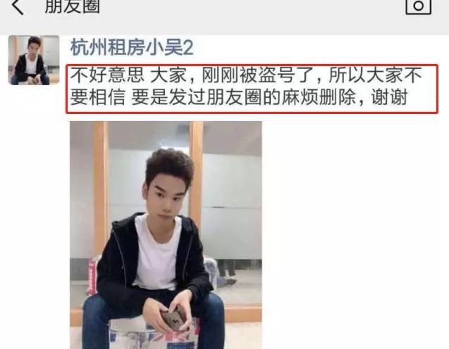 结果没过多久,小吴再次发了一条朋友圈,声称自己刚才被盗号了。