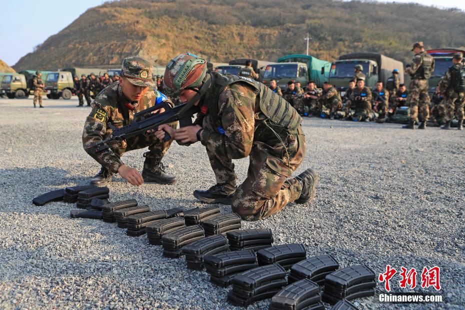 - 3月20日,武警上海总队执勤第二支队特战中队在洋山深水港某地开始了为期一周的“魔鬼周”极限训练。训练首日,特战队员们进行了长途行军、武装奔袭、极限爬行等7个课目的训练。图为特战队员在进行枪支装卸子弹训练。 中新社记者 殷立勤 摄