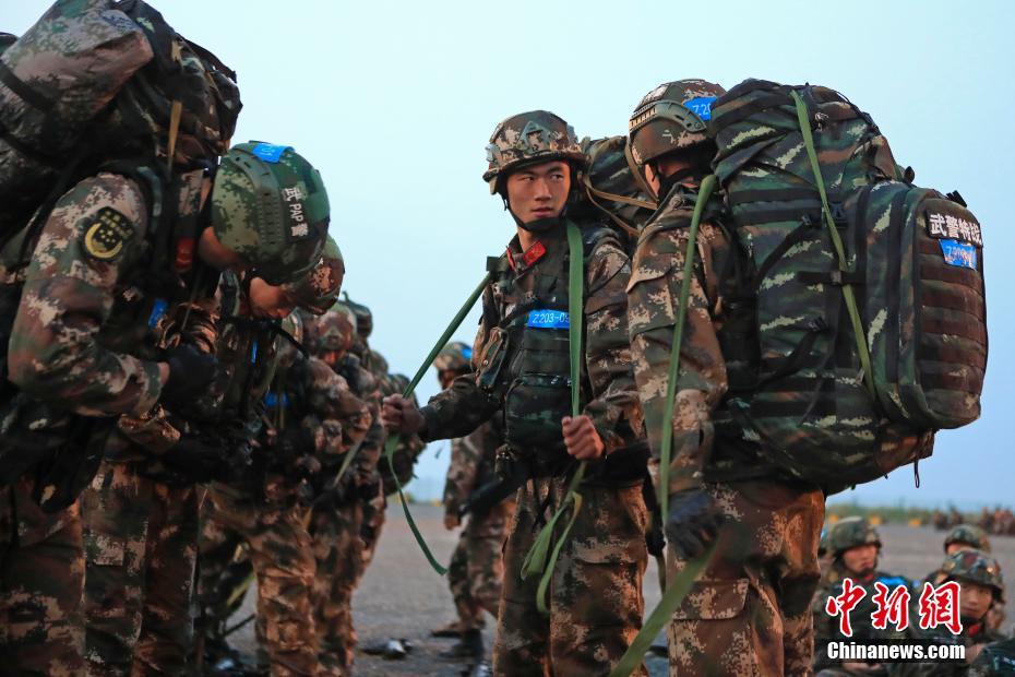 - 3月20日,武警上海总队执勤第二支队特战中队在洋山深水港某地开始了为期一周的“魔鬼周”极限训练。训练首日,特战队员们进行了长途行军、武装奔袭、极限爬行等7个课目的训练。图为特战队员整理装备。 中新社记者 殷立勤 摄