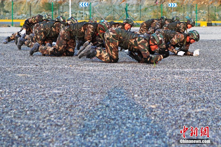 - 3月20日,武警上海总队执勤第二支队特战中队在洋山深水港某地开始了为期一周的“魔鬼周”极限训练。训练首日,特战队员们进行了长途行军、武装奔袭、极限爬行等7个课目的训练。 中新社记者 殷立勤 摄