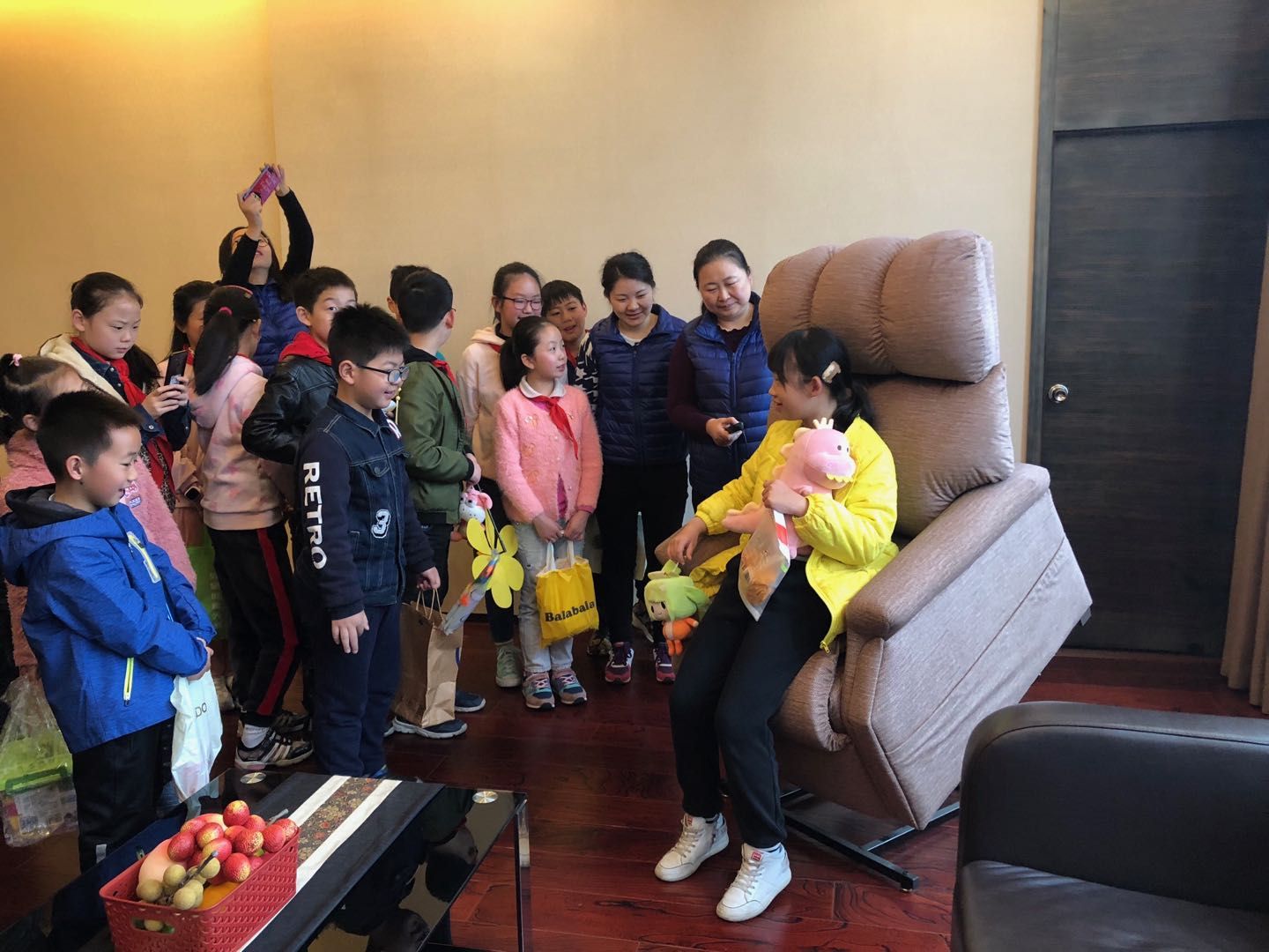 小学生体验电动起身沙发