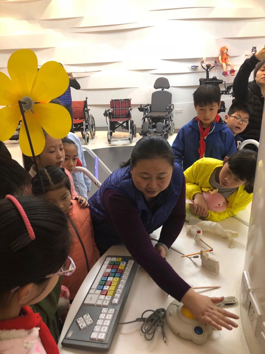 小学生们为在此接受康复训练的自闭症小朋友送去了自己精心准备的礼物和祝福,并通过参观康复中心残障人士辅具生活馆、无障碍环境体验、互动游戏、和自闭症小朋友一起画出“爱的明信片”等活动,领悟到生命的不同状态,学习帮助残障群体的技巧,培养关爱他人,奉献社会的志愿者意识。