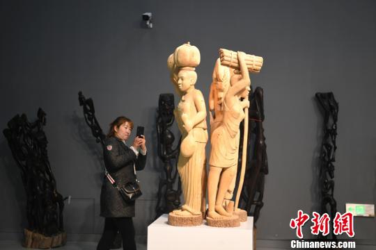 “2019非洲艺术精品展”展出了439件马孔德木雕和266件绘画作品。 张瑶 摄