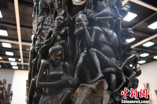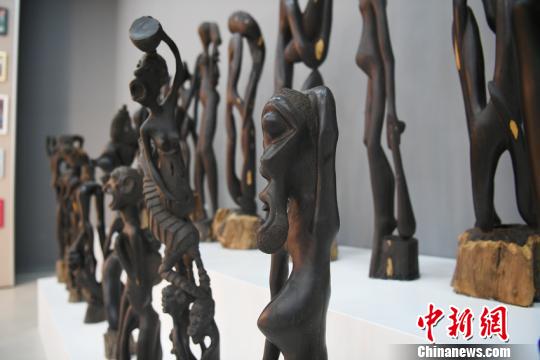 “2019非洲艺术精品展”展出了439件马孔德木雕和266件绘画作品 张瑶 摄