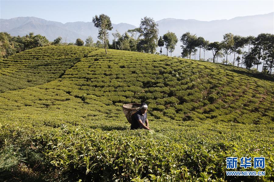 这是2018年11月25日拍摄的茶农在尼泊尔伊拉姆地区的茶园里劳作。 新华社记者 周盛平 摄