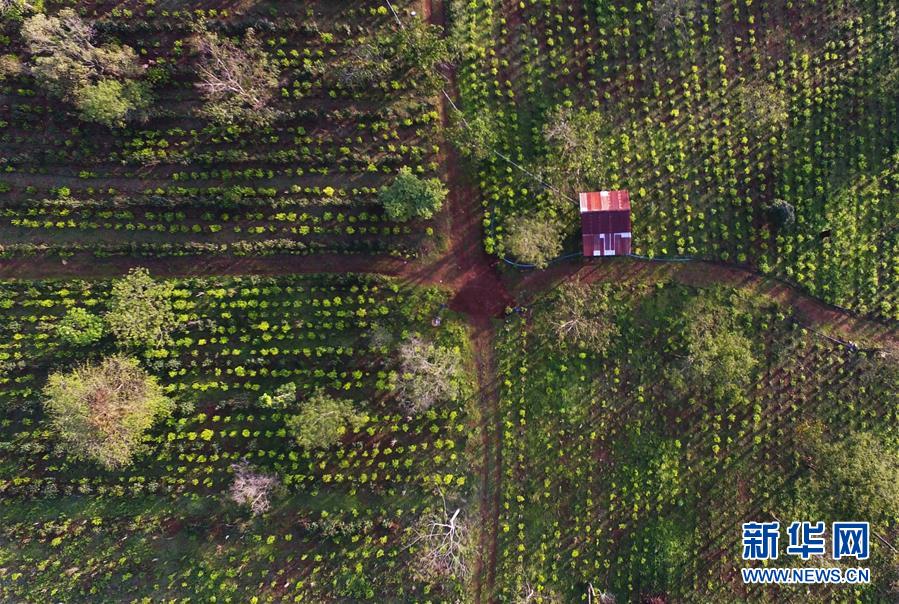 这是2018年11月16日航拍的老挝占巴塞省的茶园。 新华社发(刘艾伦 摄)