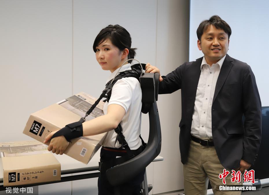 - 近日,日本东京,松下子公司Atoun展示新研发的电动外骨骼产品,配有手臂辅助部件可帮助用户搬起重物。Atoun去年开发了可穿戴电动装置,以帮助送货工人,机场、建筑工地和农场工人等搬运重物。图片来源:视觉中国
