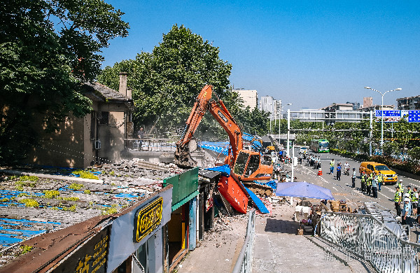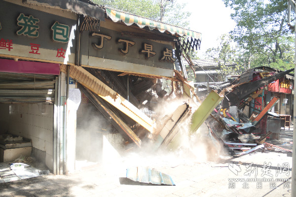 该处不仅影响市容观瞻,而且存在严重消防隐患。5月23日,洪山区政府组织联合执法,在相关部门的配合下,对违建门面予以拆除。