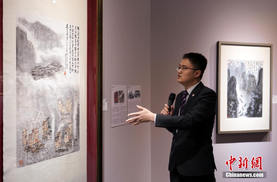 - 5月23日,中国著名画家李可染的作品《百万雄师过大江》(左)在2019年佳士得香港春拍预展上亮相。该作品将于5月28日在佳士得香港春拍“中国近现代画”拍卖会上拍卖,估价3000万港元。中新社记者 张炜 摄