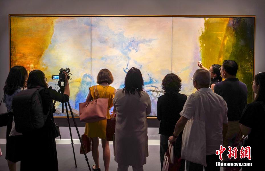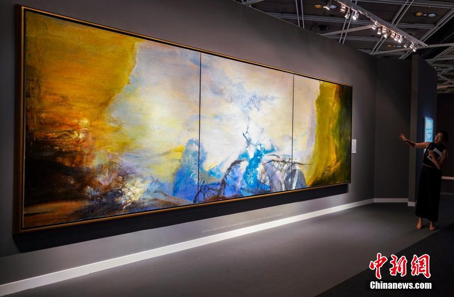 - 5月23日,法籍华裔画家赵无极的大型油画作品《三联作 1987-1988》在2019年佳士得香港春拍预展上亮相。该油画长达4.86米,高2米,是艺术品拍卖市场亮相的第二大赵无极作品,估价1.5亿港元。该作品将于5月25日在佳士得香港春拍“二十世紀及當代藝術”拍卖会上竞拍。中新社记者 张炜 摄