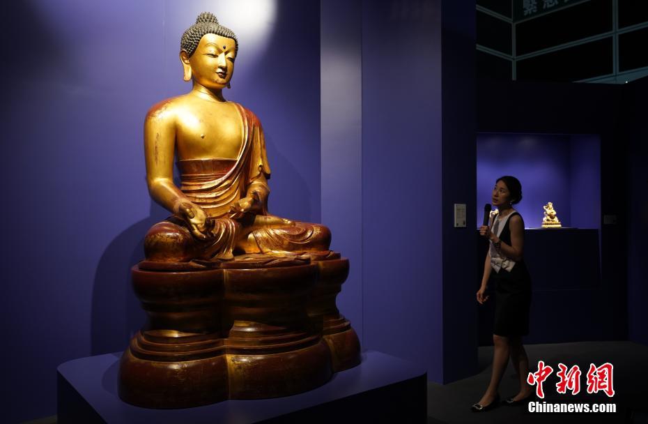 - 5月23日,一尊高达170公分的大型木胎漆金药师佛坐像在2019年佳士得香港春拍预展上亮相。该佛像为清代作品,城市旧金山绀氏洋行的镇店之宝。该作品将于5月29日在佳士得香港春拍“梵华古韵”专场拍卖会上拍卖,估价3000万-5000万港元。中新社记者 张炜 摄