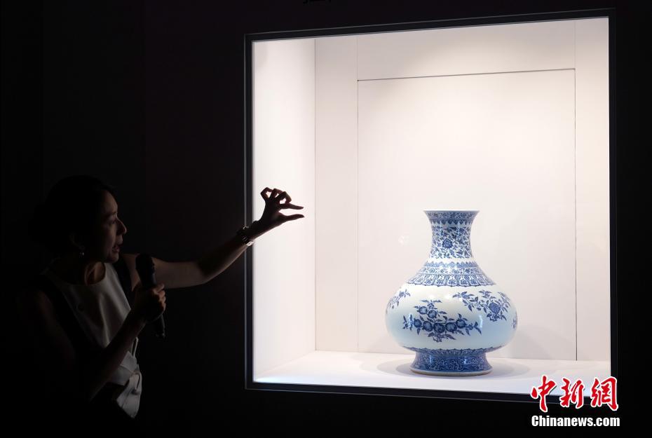 - 5月23日,清雍正年代的青花折枝花果纹大尊在2019年佳士得香港春拍预展上亮相。该青花尊由瑞典传教士拉尔森家族收藏。该作品将于5月29日在佳士得香港春拍“重要中国瓷器及工艺精品”拍卖会上拍卖,估价3200万-4500万港元。中新社记者 张炜 摄