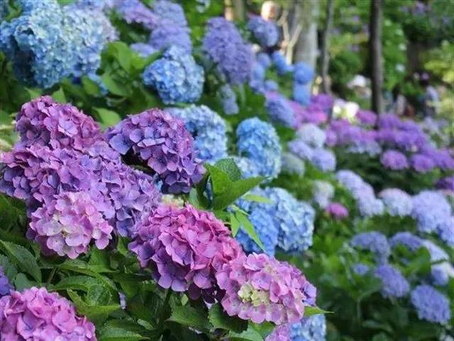 湖北日报讯(记者汪彤)五月是绣球花的主场,一簇簇或紫或蓝或白或粉的花朵,其伞形花序如雪球累累,簇拥在椭圆形的绿叶中,犹如仙境。