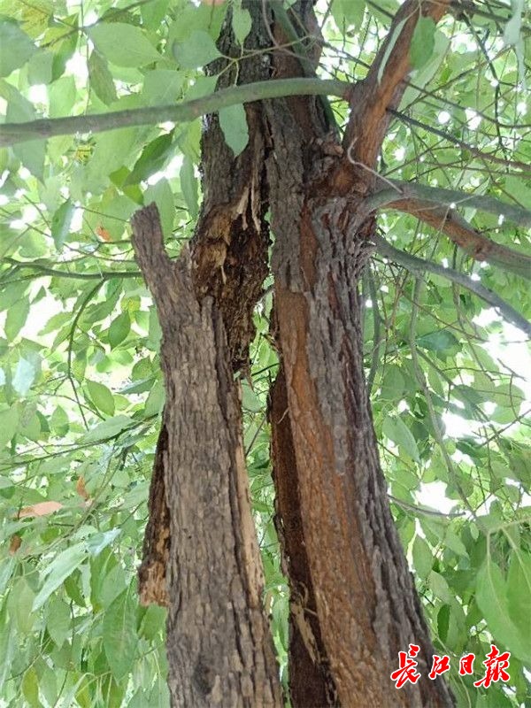 鄢先生家住附近,前些天,他路过该路段时看到,有几棵香樟树树干有些歪斜,甚至有的树干开裂。当时他忙着办事,没有太在意,但事后他担心,一旦刮风下雨,这样的树木会不会突然倒下,是否有安全隐患。