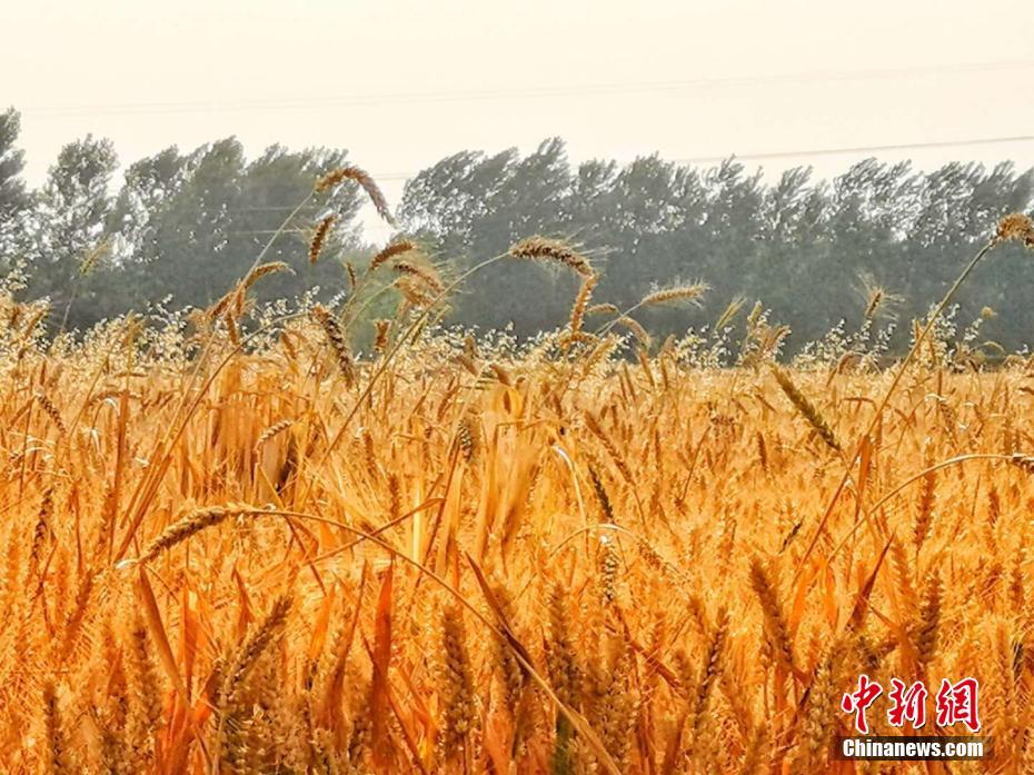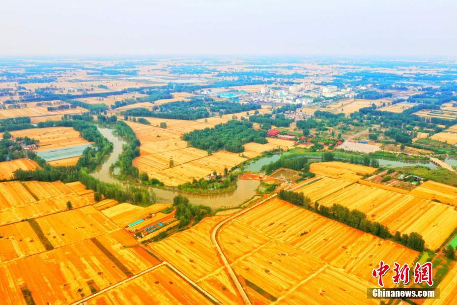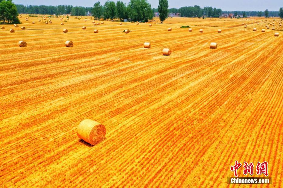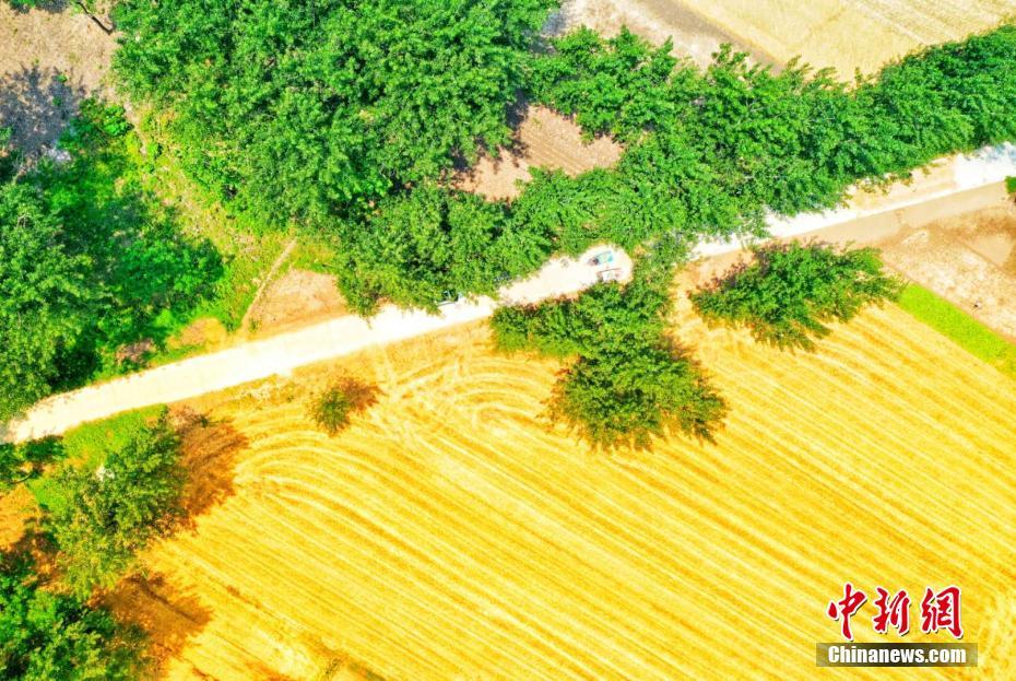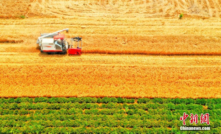 近日,皖北平原许多小麦种植区,进入收割期。航拍视角之下,麦穗映衬着骄阳,色泽格外金黄,微风过处,麦浪滚滚,宛如金波。轰轰响的收割机穿梭在麦田中,为农民丰收助力。刘浩 陈杰 摄