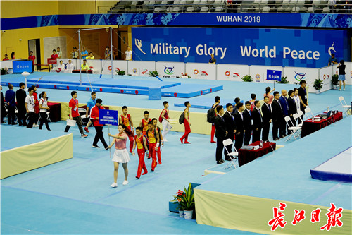 参赛选手进入参赛场 武汉军运会体操项目竞赛委员会供图