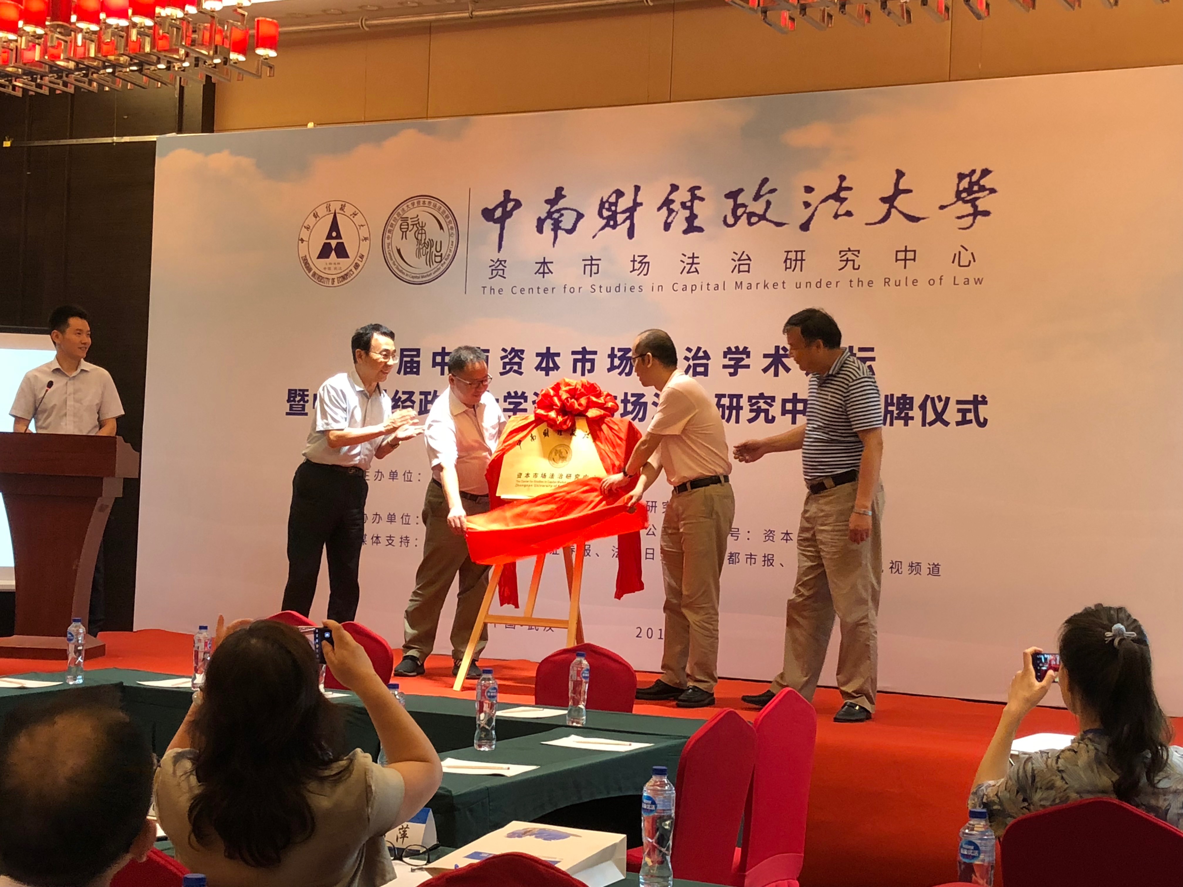 楚天都市报讯(通讯员张菁)6月15日,首届中南资本市场法治学术论坛暨中南财经政法大学资本市场法治研究中心揭牌仪式,在汉举行。