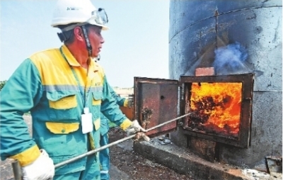 图为武汉禁毒功模民警集体点燃火炬,随后点燃销毁毒品的锅炉。