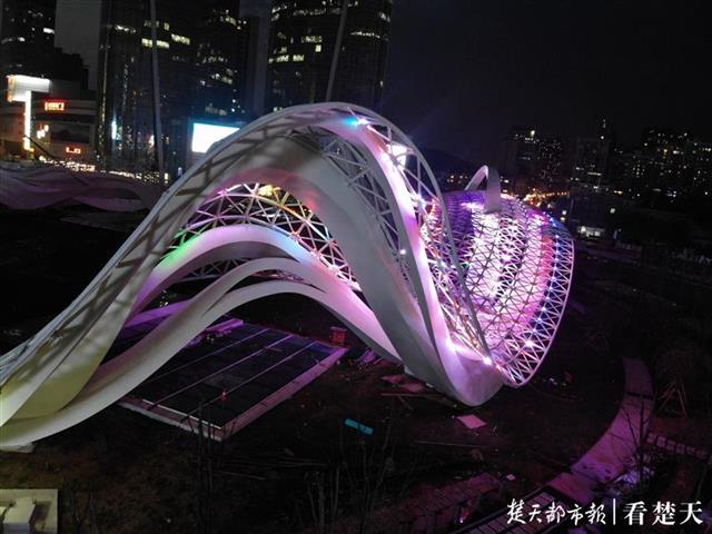 备受江城市民关注的光谷广场综合体地标性雕塑“星河”基本完工,晚间已经开始进行灯光调试。当前,广场地面上的绿化景观工程也正在施工之中,预计下月可全面完工。
