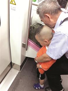 晚6时50分许,地铁即将到达中南路站时,突然有人提醒小李快把行李拿起来。她扭头一看,只见一名幼童正对着车门小便,一个头发花白的老人在后面蹲着扶着幼童。小李连忙拿起行李,上面已经沾上尿液。“我当时气坏了,用手机拍下这一幕(如图),之后质问那个老大爷:‘你在干吗?怎么在地铁上尿尿?’”小李说。身边其他乘客也一起指责老人这样做不对。谁知,老人十分淡定,等男童尿完,帮他提起裤子,不慌不忙地回答:“伢这么小,他憋不住了,你说怎么办?尿在哪?”