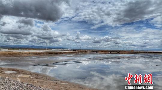 图为茶卡盐湖“天空壹号”景区内,湖面如镜面一般。 孙睿 摄