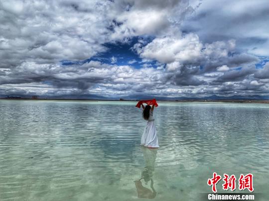 图为茶卡盐湖“天空壹号”景区内,游客进行拍照。 孙睿 摄