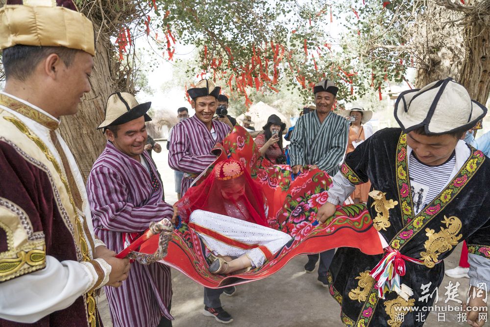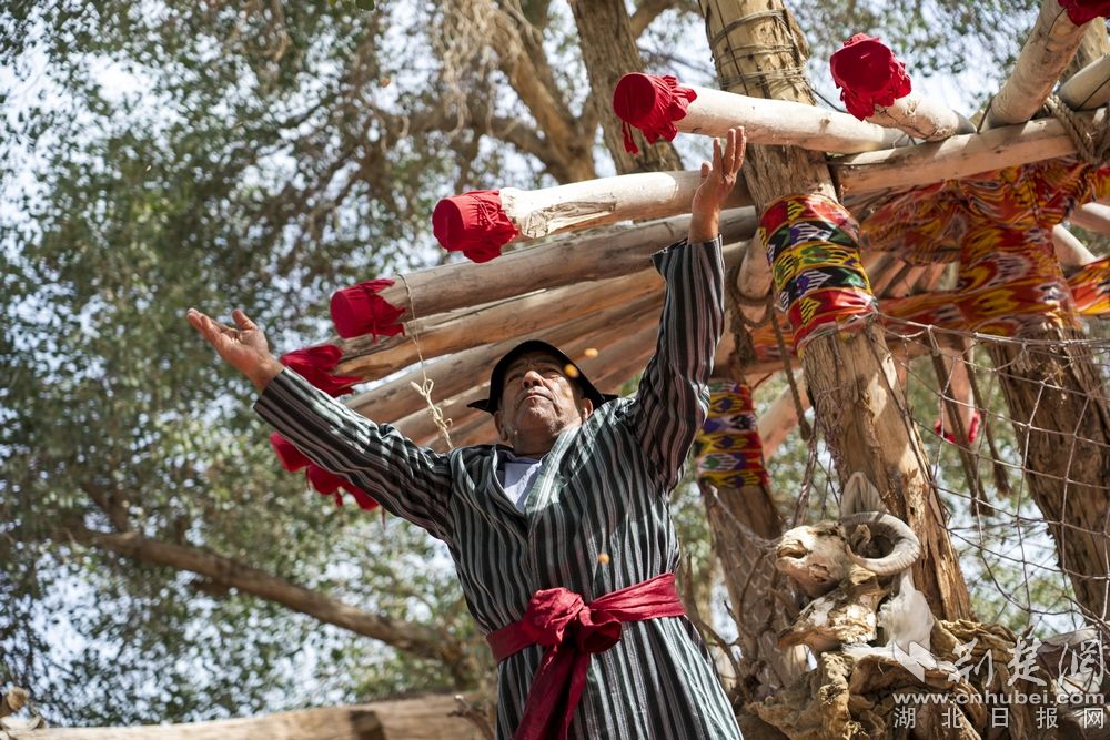 - 现在,人们若想领略古老的罗布民俗风情,尉犁县罗布人村寨则是最理想的体验点。图为:罗布人正在为游客表演传统的祭祀活动。记者 刘建维 摄
