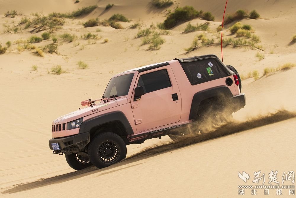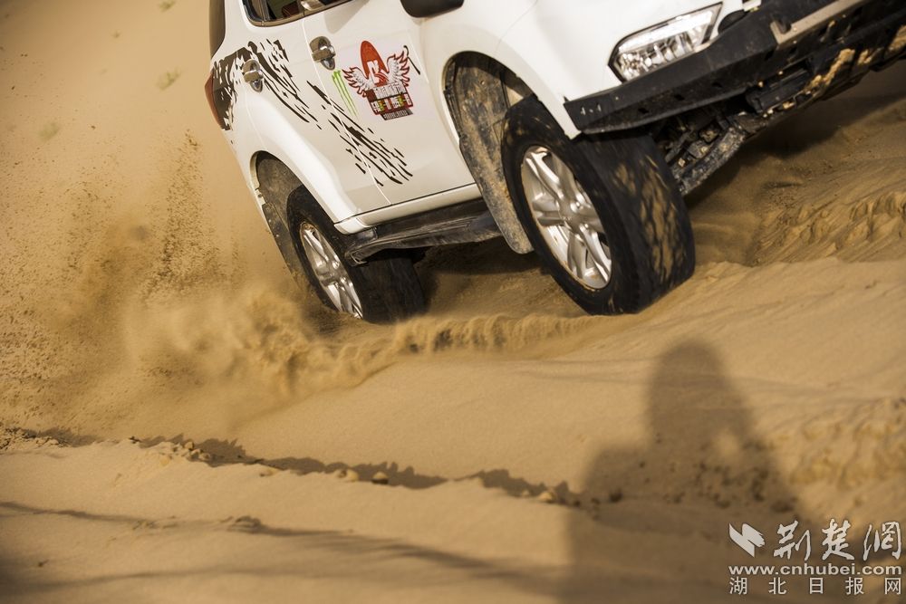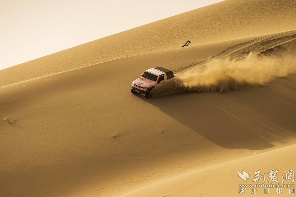 - 图为:博湖县境内,塔克拉玛干沙漠中的越野一族。记者刘建维 摄。记者刘建维 摄