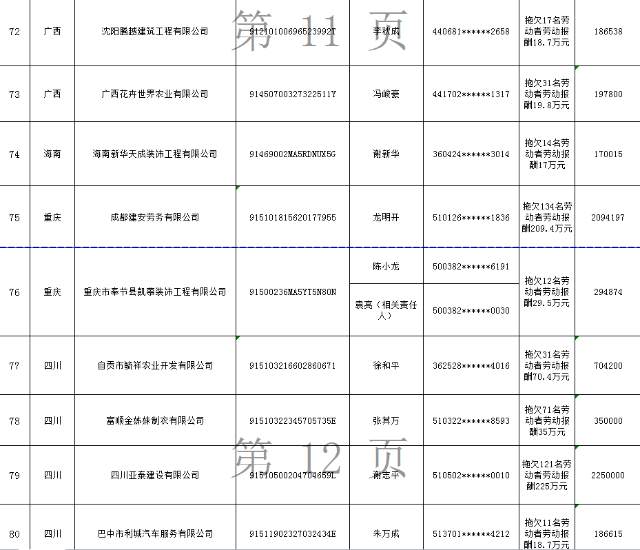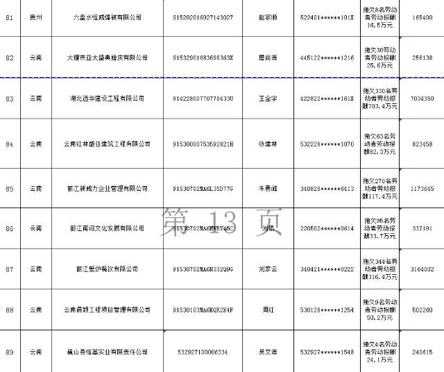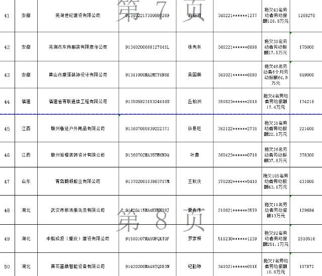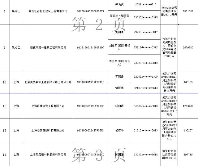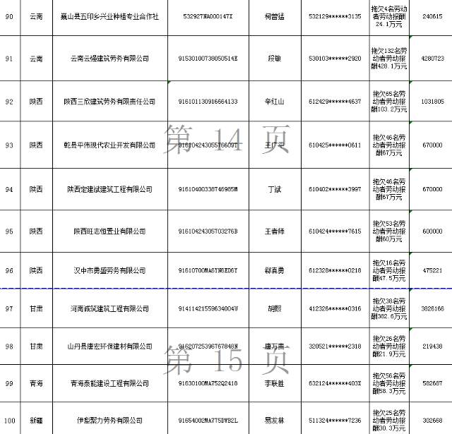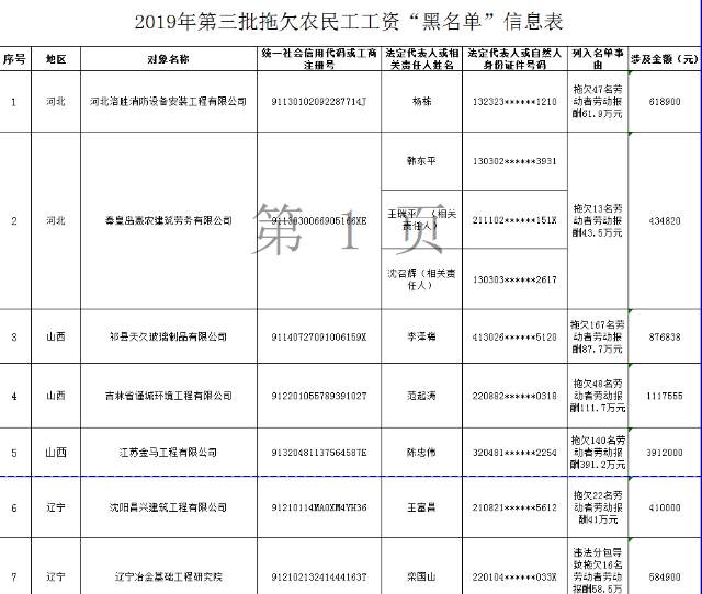 人社部今天公布2019年第三批拖欠农民工工资“黑名单”,共涉及100家企业,总金额共计1.2亿元。此次公布的第三批拖欠农民工工资“黑名单”,与今年前两次相比,规模大,涉及行业面广,不仅有工程建设领域企业,还有加工制造等其他行业企业,这100家中有43家工程建设领域企业,案件涉及劳动者7548人。