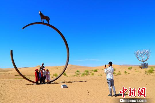 图为游客在沙漠雕塑公园游览留影。 马爱彬 摄