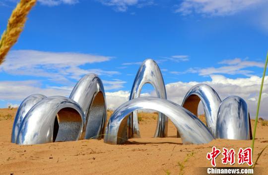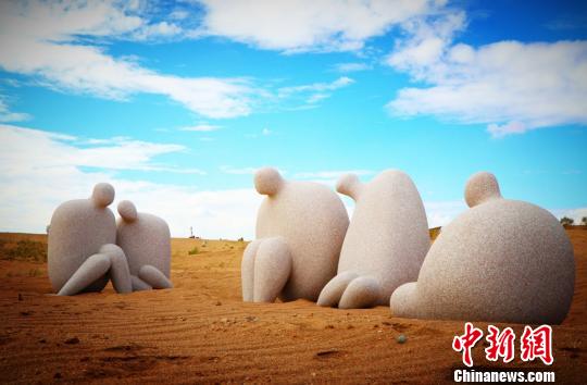 连日来,2019中国·民勤第二届沙漠雕塑国际创作营暨大地艺术节在甘肃武威民勤县苏武沙漠大景区启幕。 马爱彬 摄