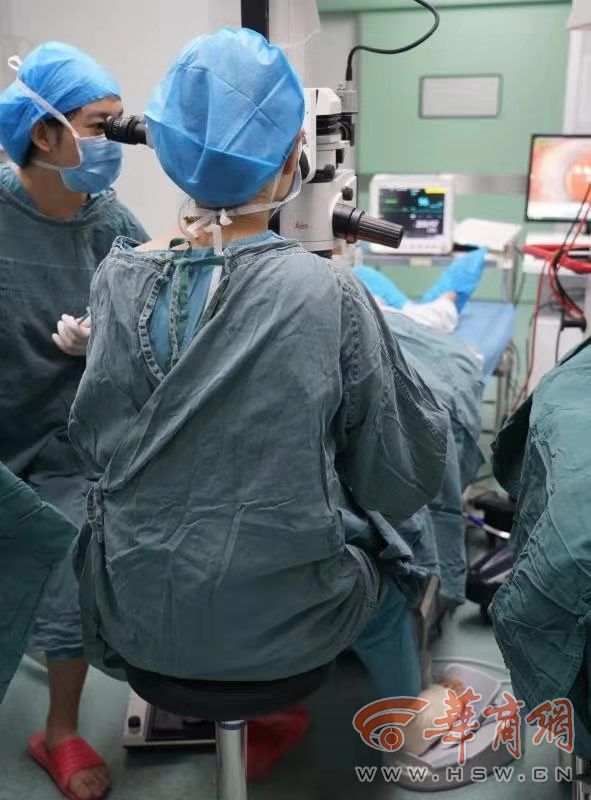 手术台上,张倩聚精会神,眼中只有手术刀下的病人,她不时地用骨折的右脚踩踏超声乳化机,完全忘记了自己也是位骨折患者,把骨科医生要求她休息的叮嘱抛诸脑后。