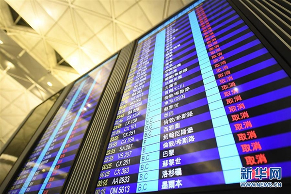 受非法集会影响,香港机管局12日下午宣布取消香港国际机场当日剩余航班。