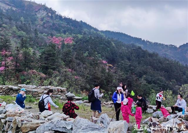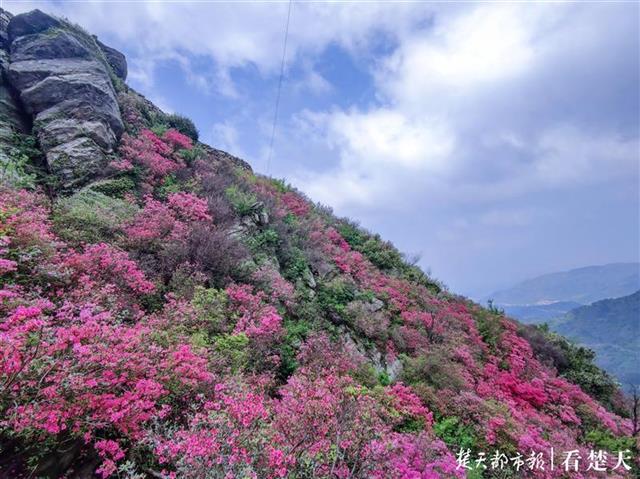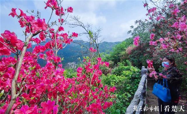 4月21日,在湖北省武汉市黄陂区云雾山,满山遍野的杜鹃花,开始有了赏花人。