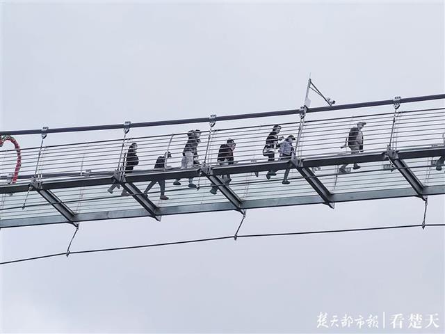 玻璃天桥上,游客可站高望眺