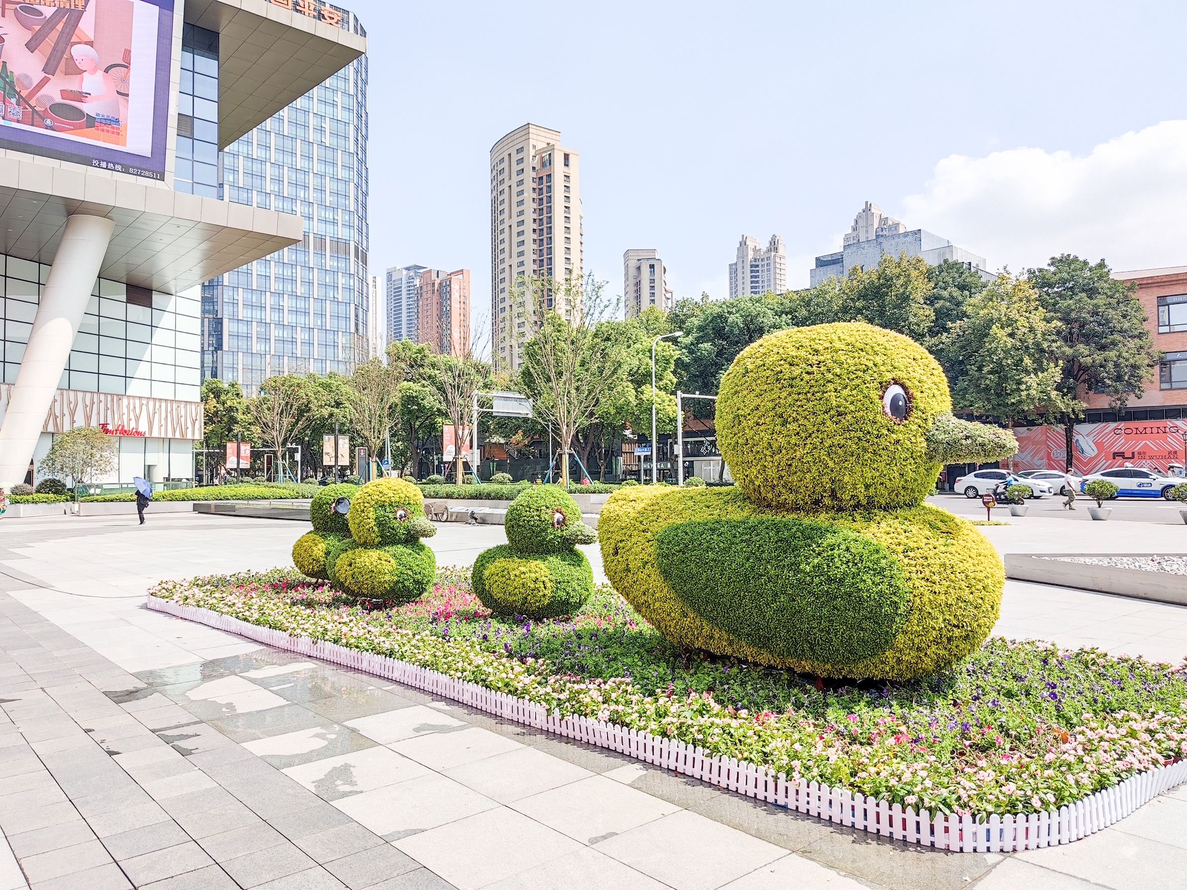 据了解,武汉全市共布置了32组立体花坛,提升原有立体花坛22组,新建10组,位于汉口江滩一元广场、洪山广场、天天渔港、武昌火车站西广场、江夏中央大公园和蔡甸广场等地。此外,还有5组新建的动物绿雕,也吸引了不少市民驻足:你看!在壹方广场前“游”来一群“鸭”,似在大声呼喊“加油鸭”……