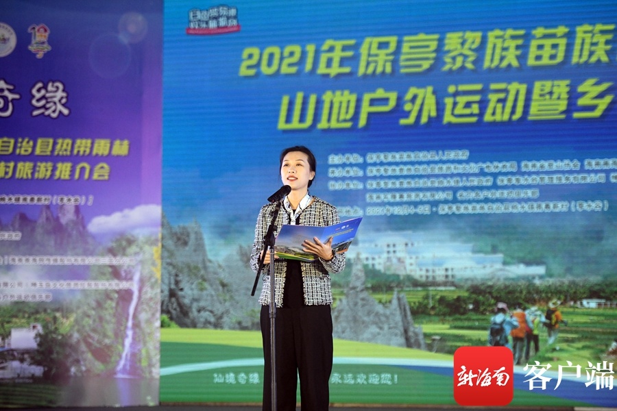 当天下午,保亭黎族苗族自治县人民政府、保亭黎族苗族自治县旅游和文化广电体育局、保亭黎族苗族自治县响水镇人民政府等单位负责人出席推介会,整体推介了保亭热带雨林山地户外运动、乡村旅游和气候康养。