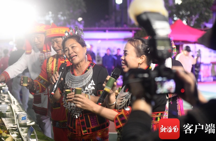 "第一次来海南,保亭的气候、空气非常好,当地黎苗特色长桌晚宴令人大开眼界,感受到了海南保亭人民非常热情。"来自石家庄新闻网的李征品尝着美味的黎苗长桌宴,欣赏着欢快的黎苗歌舞,与当地黎苗同胞进行互动,好不热闹。