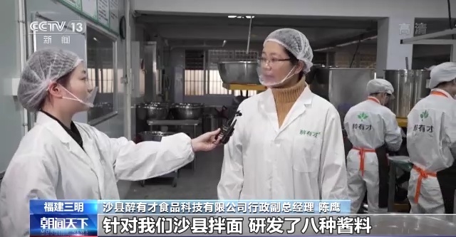 沙县醉有才食品科技有限公司总经理 陈鹰:针对沙县拌面,研发了八种酱料,我们用多种方式,把我们的酱料销到全国各地,既销到了小吃(店)业主的手上,也销到了家庭。