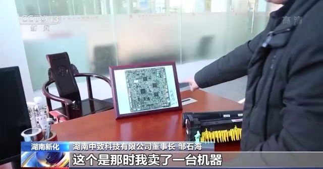 湖南中致科技有限公司董事长 邹石海:这个是那时我卖了一台机器,卖了不到三四个月,就出现了问题,这个(电子板)我们正好没有,只能从国外发过来,差不多两个月,人家不愿意所以要退货。我就记得这个教训,必须自己有。