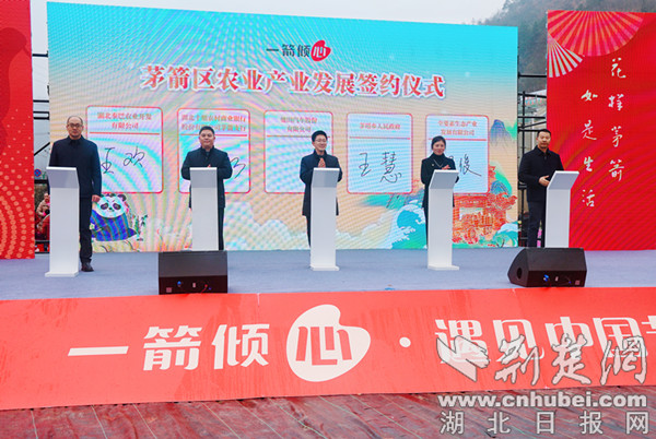 开幕会上,湖北秦巴农业开发有限公司与驰田汽车股份有限公司、农商行茅箭支行签订产品订购合作协议,茅塔乡与十堰全要素生态产业发展有限公司签署战略合作框架协议。