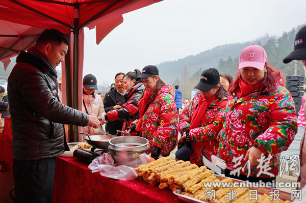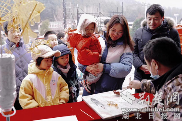 在随后举行的遇见中国节活动中,先后展示了剪纸、灯笼、春联、龙灯等年俗文化;省、市书法家现场为游客和乡亲书写春联;工坊手艺人制作的糖葫芦、糖人、糖画、喜饼等食品为活动。吊锅、围炉煮茶等特色项目让人暖意盈怀;舞龙、灯谜、投壶、套圈等互动节目引得大家纷纷驻足参与;“时光照相馆”不断拍出阖家团圆全家福,年货市集的茅箭好物赢得点赞无数,特别是“茅塔一宿”民宿预订二维码的发布,拉开了茅箭文旅产业矩阵发展的新篇章。