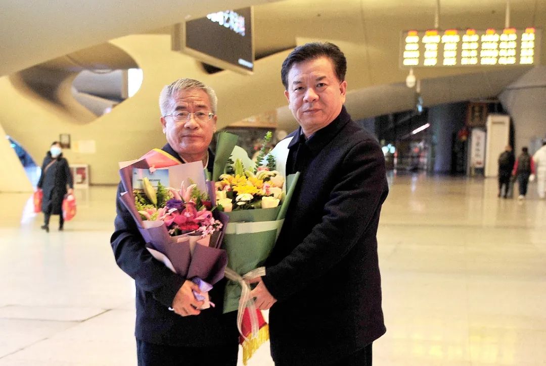 ▲24日晚,校党委副书记、副校长姚江林代表学校前往武汉站迎接载誉归来的张献龙教授(徐行 摄)