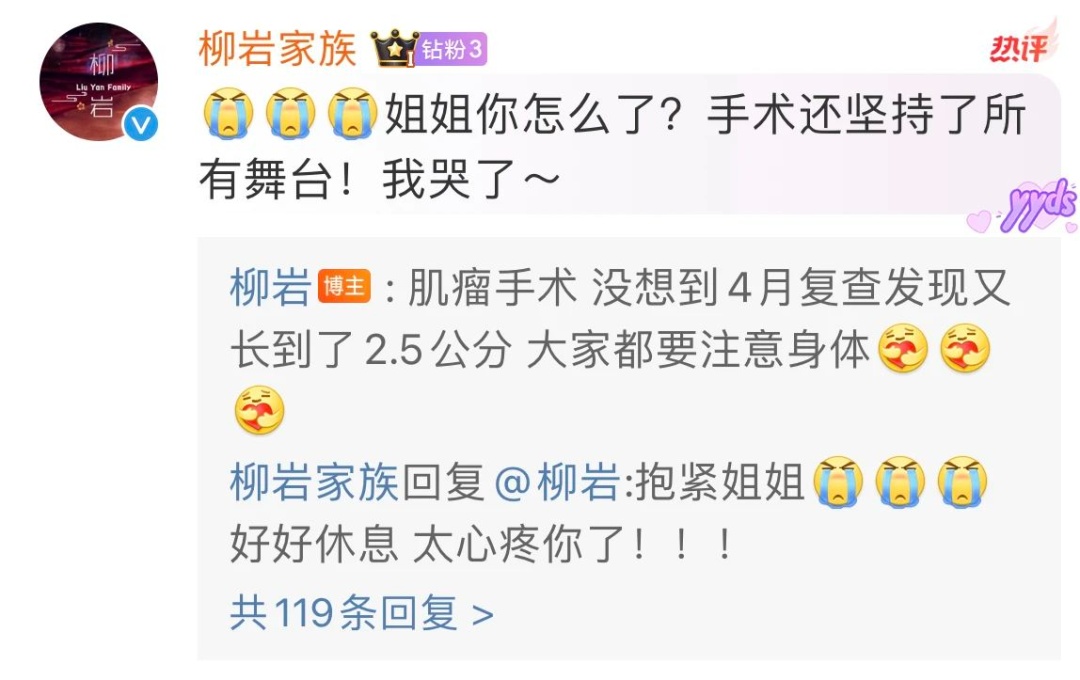 不少粉丝留言对柳岩的身体情况表示担心,44岁柳岩自曝患子宫肌瘤冲上热搜第一。