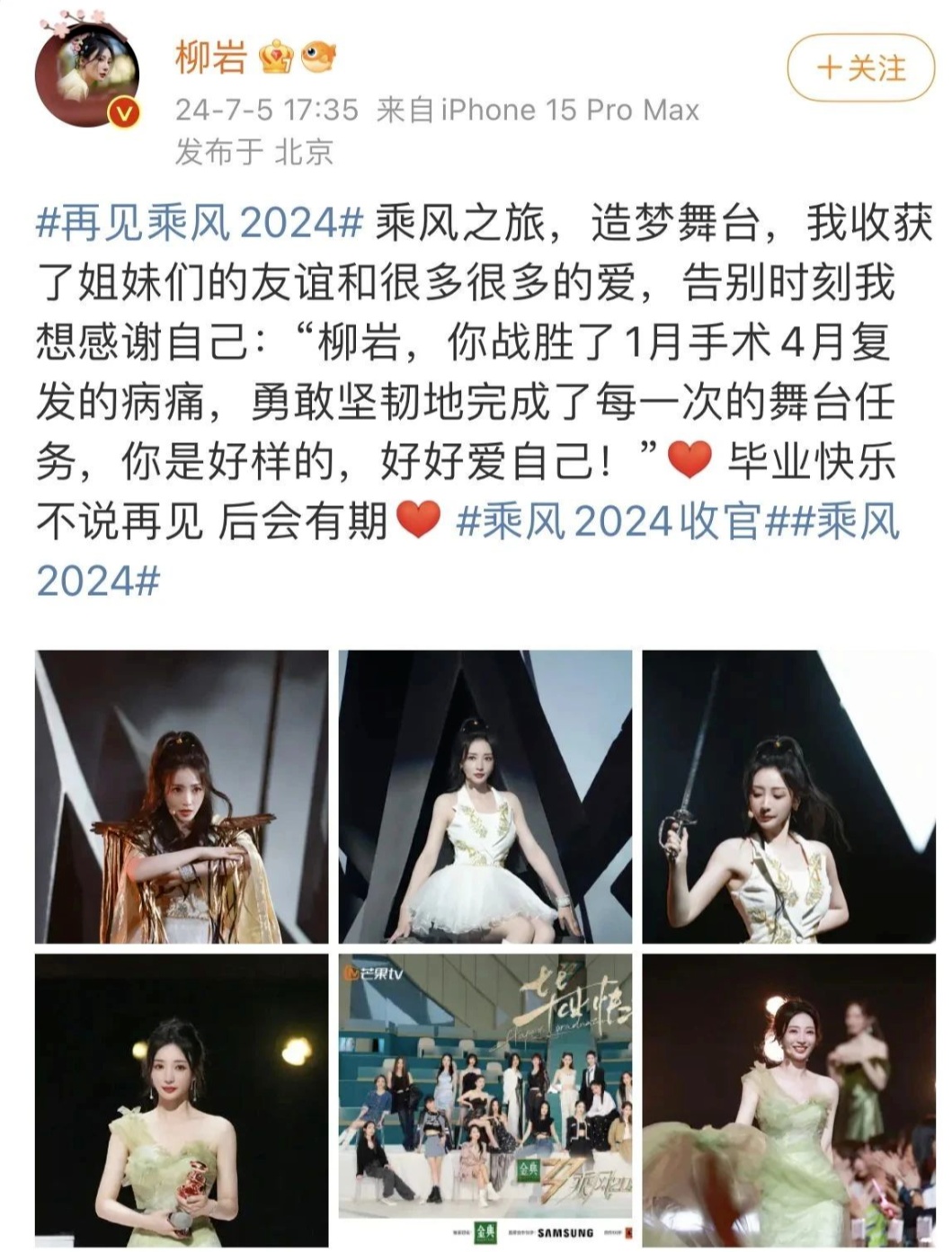 《乘风2024》在前段时间落下帷幕,44岁的柳岩发文感谢乘风之旅,并提到在一月份做了子宫肌瘤手术,四月复查时发现肌瘤又长到了2.5公分。